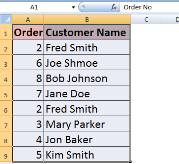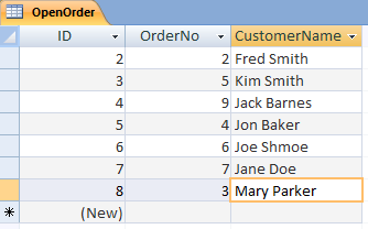 字段名称:OrderNo, CustomerName