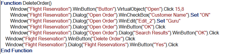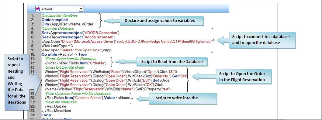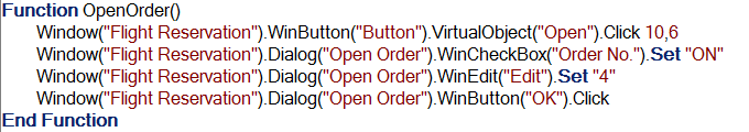 以下脚本用于从 Excel 读取订单号并通过变量“vOrder”将其分配到应用程序中,并通过变量“vName”从应用程序写入客户名称。