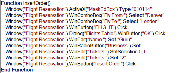 我们的目标是为五个不同的测试用例运行一个测试,例如登录应用程序、插入订单、打开订单、删除订单和关闭应用程序。因此,我们将记录这些测试用例的测试步骤,并分别创建关键字为 Login、InsertOrder、OpenOrder、DeleteOrder 和 CloseApp 的函数。