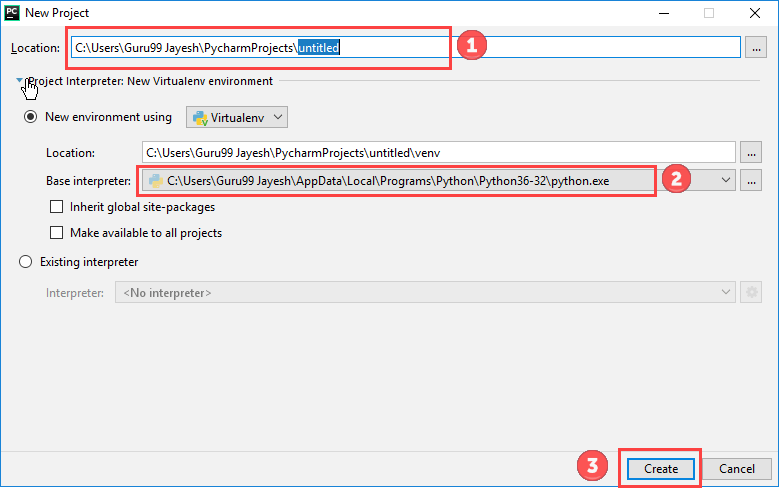 步骤 1) 打开 PyCharm 编辑器。您可以看到 PyCharm 的介绍屏幕。要创建一个新项目,请单击“创建新项目”。