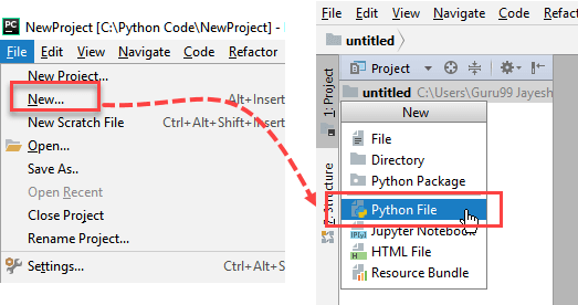 步骤 3) 现在转到“文件”菜单,选择“新建”。然后,选择“Python 文件”。