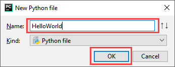 步骤 4) 将出现一个新的弹出窗口。现在输入您想要的文件名(这里我们输入“HelloWorld”)然后按“OK”。