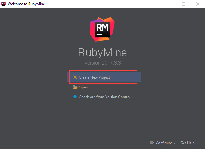 您将看到 Rubymine 仪表板如下