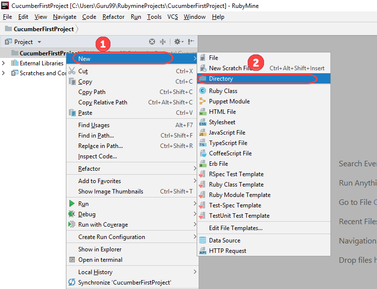 在 Rubymine 编辑器中创建一个新文件夹