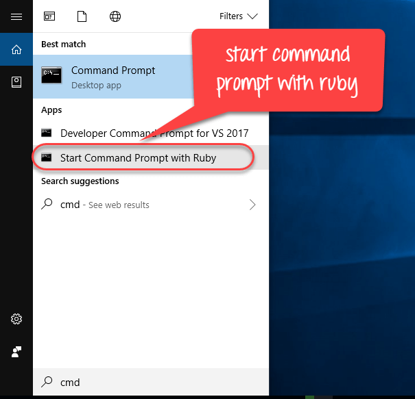 步骤 8) 您将看到类似于 Windows cmd 的 Ruby 命令提示符。