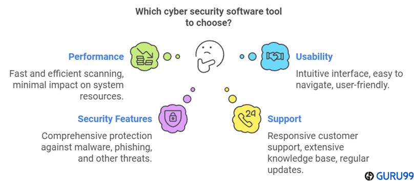 在Guru99,我们致力于提供可信、准确和客观的信息。我花费了 100 多个小时研究 40 多个最佳网络安全软件工具,包括免费和付费选项,以创建一个值得信赖的指南。此无偏见的评论涵盖了基本功能、优缺点,并提供了全面的见解。我们的目标是帮助您找到最适合的工具,同时确保它能应对现实世界的威胁并提供可靠的保护。我们的方法侧重于具有强大安全功能工具,以确保您得到有效保护。