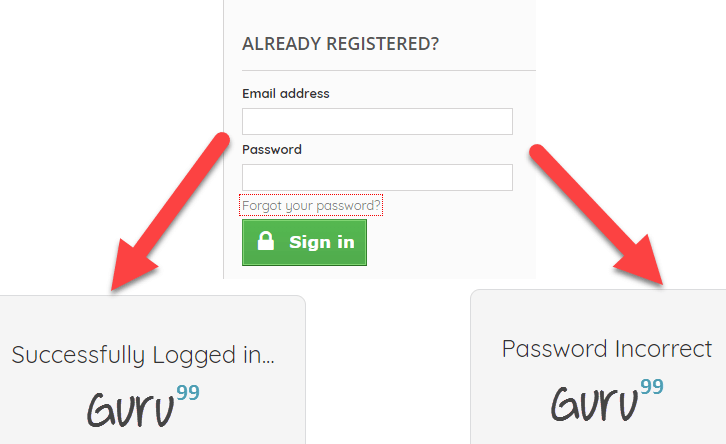 - 输入不正确的用户名和不正确的密码 – 登录失败