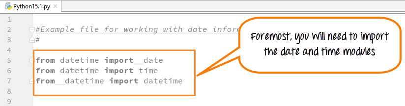 这些导入语句是Python库中预定义的函数集,让您无需编写任何代码即可处理日期和时间。