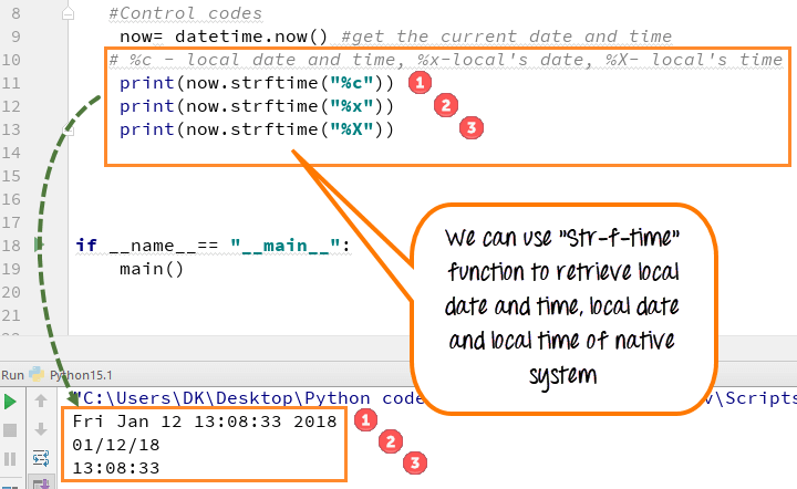 步骤4) 借助“Strftime”函数,我们还可以检索本地系统时间、日期或两者。