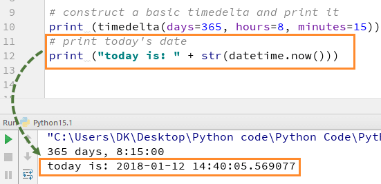 请记住,此函数不是用于打印时间或日期的,而是用于计算未来或过去的事情。让我们看一个Python timedelta示例来更好地理解它。