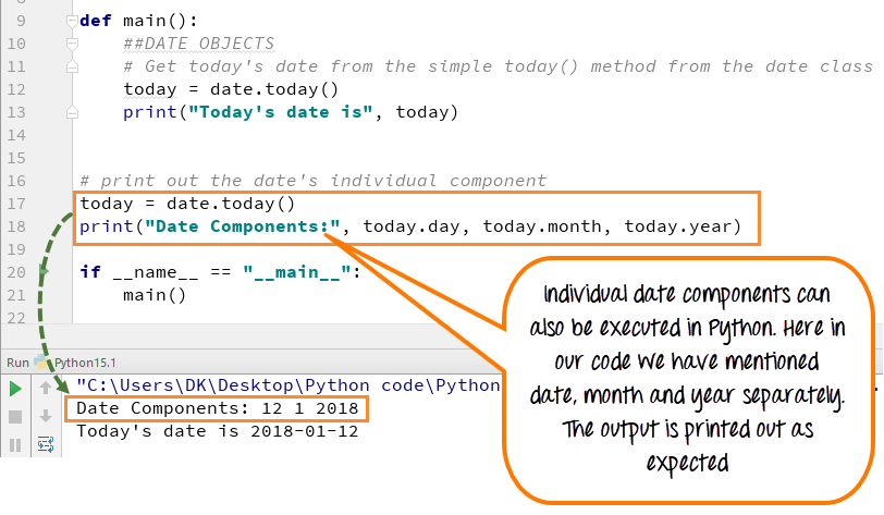 步骤2) 让我们获取今天的日期和时间,以检查我们的导入语句是否正常工作。当代码执行时,它会打印今天的日期,这意味着我们的导入语句工作正常