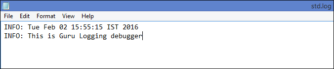 代码第 16 行: 我们使用 info 方法打印“This is Guru Logging debugger”。