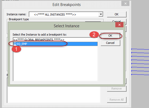 例如,如果我们为断点定义deptno=20,那么当某条记录满足此条件时,调试器将停止在该数据实例。