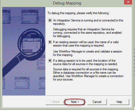 Informatica Designer提供了使用调试器来调试映射的功能。这意味着我们可以调试和分析任何现有映射。调试器的要求是映射必须是有效的映射。