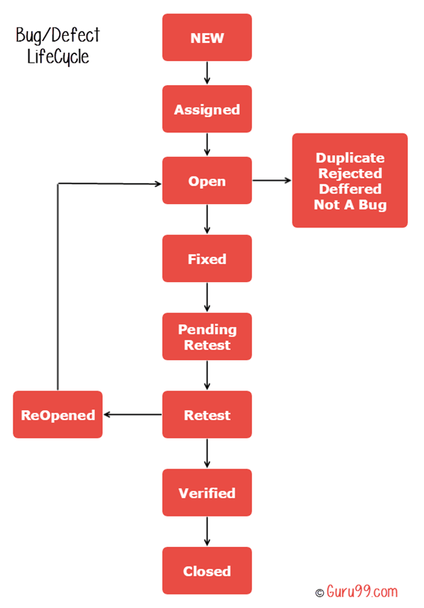 - 重新打开:如果开发人员修复错误后错误仍然存在,测试人员将状态更改为“重新打开”。错误再次经历生命周期。