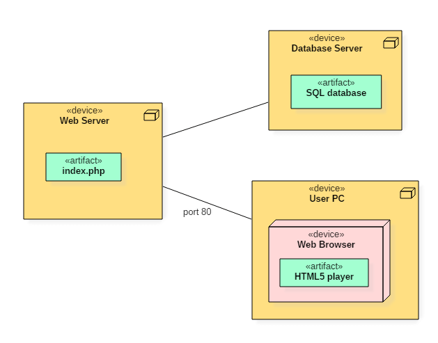 以下部署图代表了浏览器中 HTML5 视频播放器的运行情况