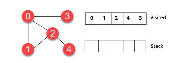 最后,我们将访问最后一个顶点 3,它没有任何未访问的邻近节点。我们已经使用 DFS 算法完成了图的遍历。