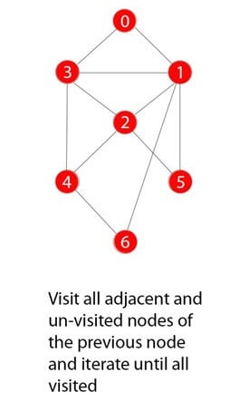 访问过的所有节点都会被标记。这些迭代将继续进行,直到图的所有节点都被成功访问并标记。BFS 的全称是广度优先搜索。