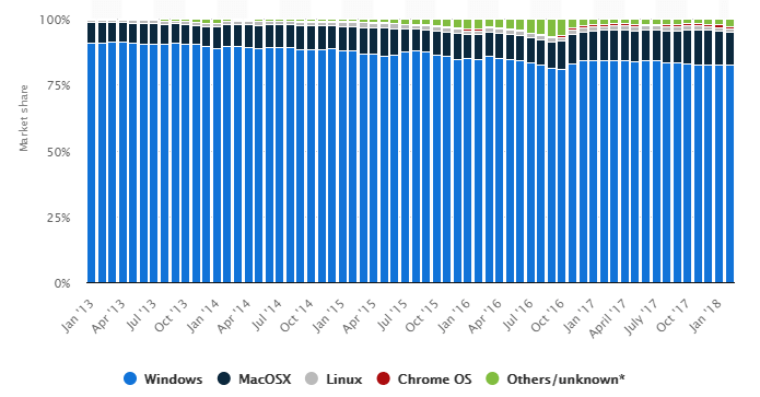 Linux 与其他操作系统的市场份额比较