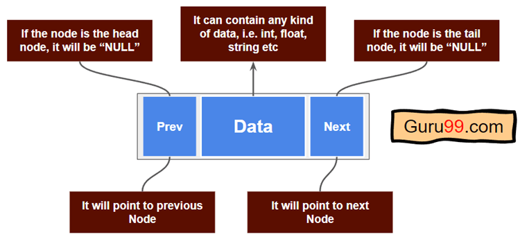 - Prev:每个节点都链接到其前一个节点。它用作指针或链接。