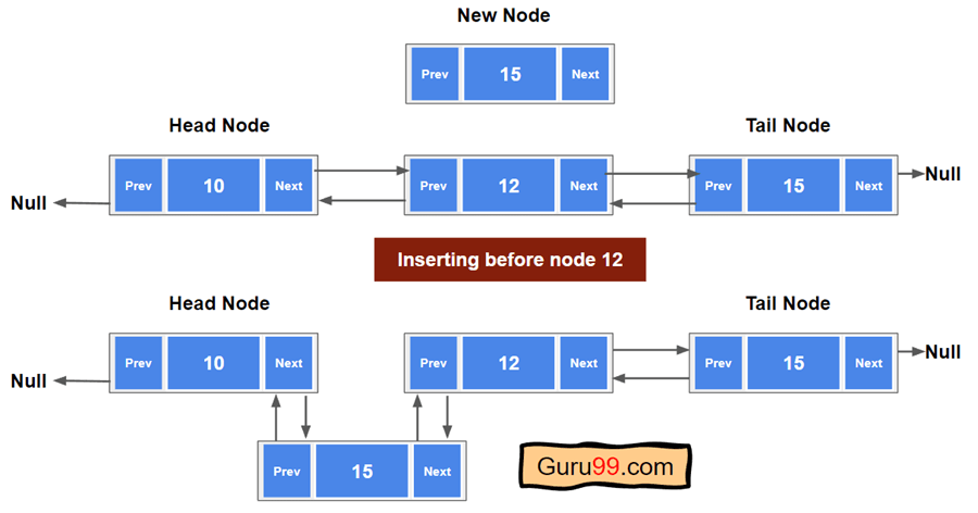 假设我们想在节点“12”之前插入一个给定节点“15”。那么执行此操作的步骤如下