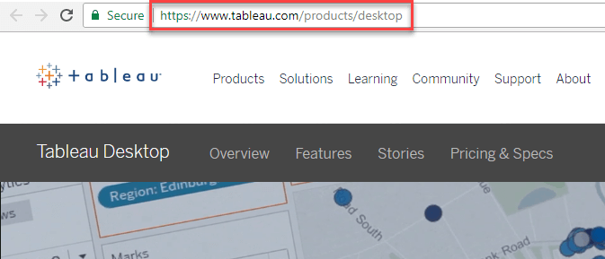 步骤 1) 在您的网页浏览器中访问 https://www.tableau.com/products/desktop。