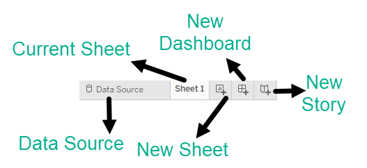 选项卡中的新建工作表图标可用于在 Tableau 工作簿中创建新的工作表。