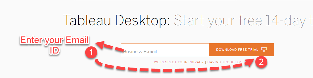 步骤 1) 在您的网页浏览器中访问 https://public.tableau.com/en-us/s/download。现在您需要输入您的电子邮件地址,然后单击“下载应用程序”按钮。