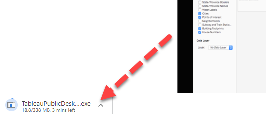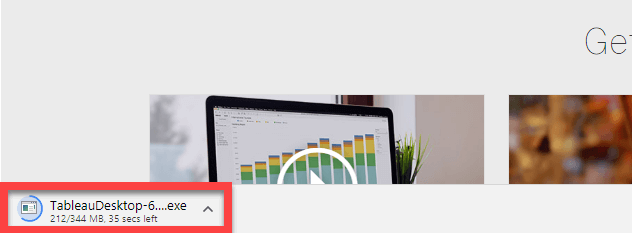 步骤 4) 这将开始下载 Tableau 的最新版本。将下载适用于 Windows 的 .exe 文件,您可以在网站左下角看到下载过程。