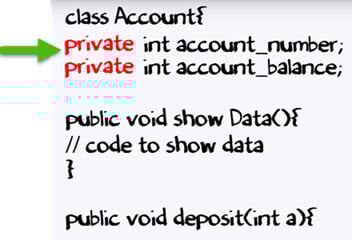如果数据成员是私有的,这意味着它只能在同一类中访问。外部类无法访问私有数据成员或其他类的变量。所以,在我们的例子中,黑客无法向您的账户存入-100金额。