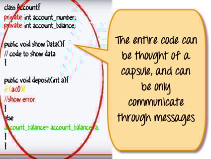 整个代码可以看作一个胶囊,您只能通过消息进行通信。因此得名封装。
