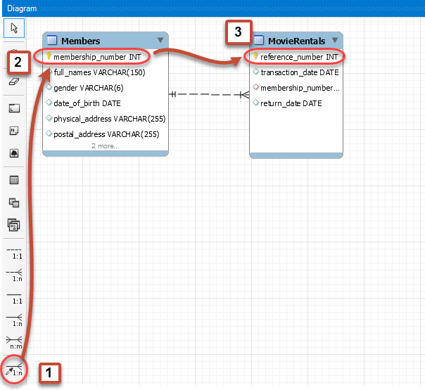 - 单击“会员”表中的 membership_number。