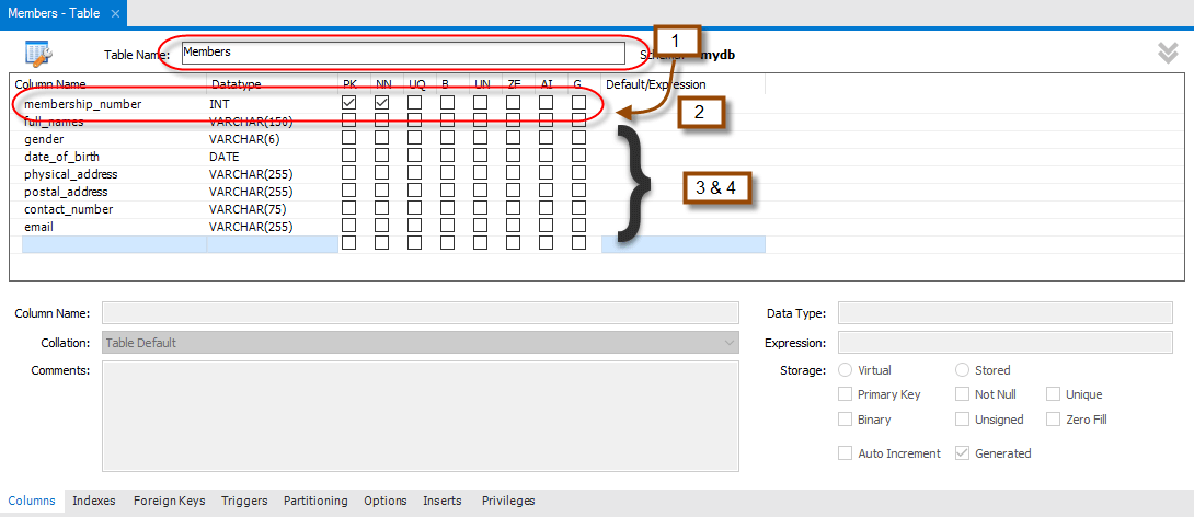 - 将 table 1 更改为 Members。