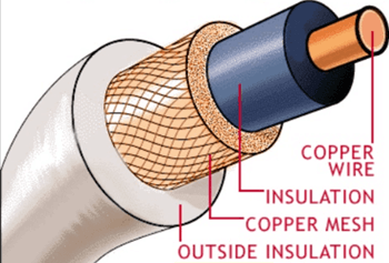 它有一层塑料,在编织金属屏蔽层和中心导体之间提供绝缘。同轴线缆的中心有一个铜导体。
