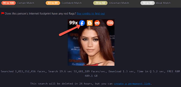 以下是我使用FaceCheck ID查找其Facebook的图片搜索步骤