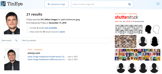 TinEye是一个完整的反向图像搜索引擎,提供MatchEngine、TinEye API、MulticolorEngine等其他工具。我发现它非常适合查找重复图像,并且在查找有人在Facebook上创建的虚假个人主页时特别有用。