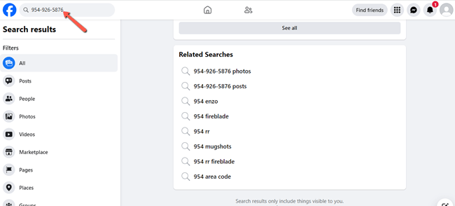 在我看来,Facebook个人资料查看器是社交媒体搜索的最佳选择之一。它是一个受欢迎的人物搜索引擎,可以帮助您通过姓名、地点或电话号码查找某人。我在下面提供了一个搜索方法的截图。您只需转到主页上的搜索栏,即可找到电话号码的所有者