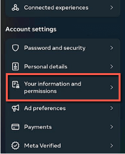第 3 步) 选择“帐户中心”选项,然后选择“您的信息和权限”。