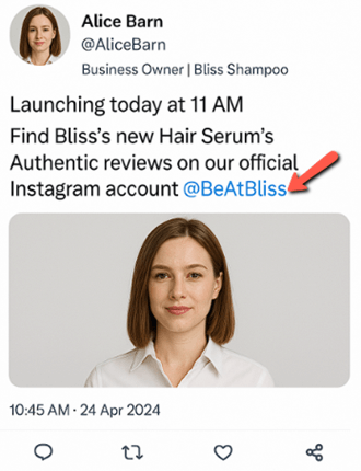 我也尝试过通过访问 Twitter 上某个企业主帐户来使用此方法。她主要在 Twitter 上发帖,但我想知道她是否也有 Insta 帐户。在 X 上这可能会有点棘手,因为 Instagram 与 Twitter 没有交叉发布选项。但是,她在一条推文中提到她将在她的 Instagram 帐户上推出一款护发产品,并在 Reels 上发布了真实的评论。因此,这是通过 X 找出他们是否有 IG 的一种方式。有些人还在他们的帖子中提供了他们的 Instagram 句柄。