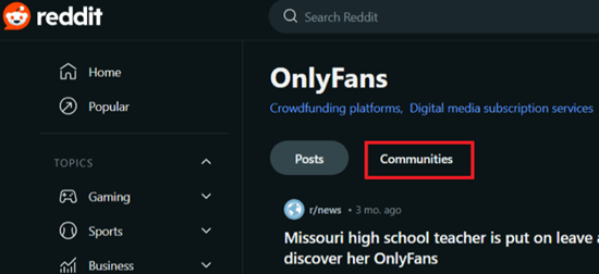 第1步)登录并访问https://www.reddit.com/t/onlyfans/,然后选择社区选项卡。