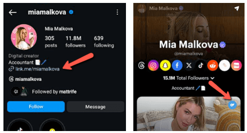 OnlyFans模特喜欢推广他们的帐户以增加订阅者;因此,他们肯定会在他们的个人简介中放置他们的OF链接。例如,在Instagram上,他们可能还会在他们的个人简介中使用链接管理器,如Linktree、AllMyLinks或Hoobee,其中包含他们所有的社交媒体帐户和邀请制个人资料的单个链接。