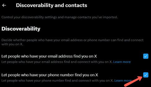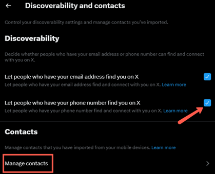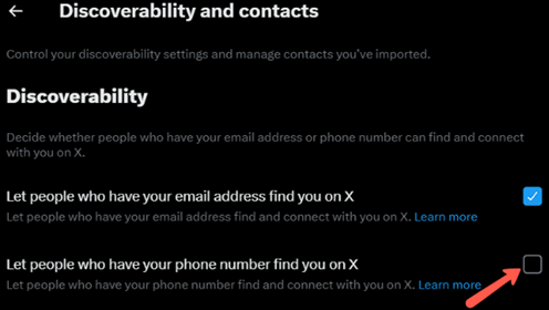 第3步)确保发现性设置已启用。此功能允许Twitter使用您地址簿中的电话号码来推荐Twitter个人资料。