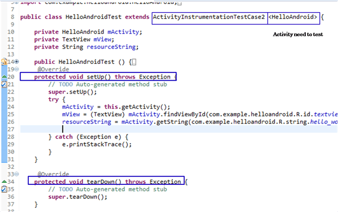 public class HelloAndroidTest extends ActivityInstrumentationTestCase2 <HelloAndroid> {