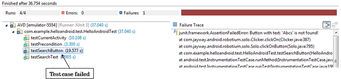 - 要测试某个活动(即 HelloAndroid),请创建测试用例扩展 ActivityInstrumentationTestCase2<HelloAndroid>