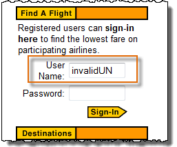 步骤 3) 观察到用户名的文本框中填充了文本“invalidUN”