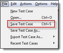 现在我们已经完成了测试脚本,我们将把它保存为一个测试用例。在“文件”菜单中,选择“保存测试用例”。或者,您只需按 Ctrl+S。 |