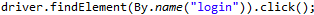 | By.className | 根据“class”属性的值查找元素 | findElement(By.className(“someClassName”)) |