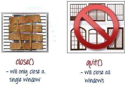 - close() 和 quit() 方法用于关闭浏览器窗口。