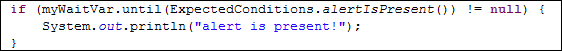 声明一个 WebDriverWait 变量。在此示例中,我们将使用“myWaitVar”作为变量名。