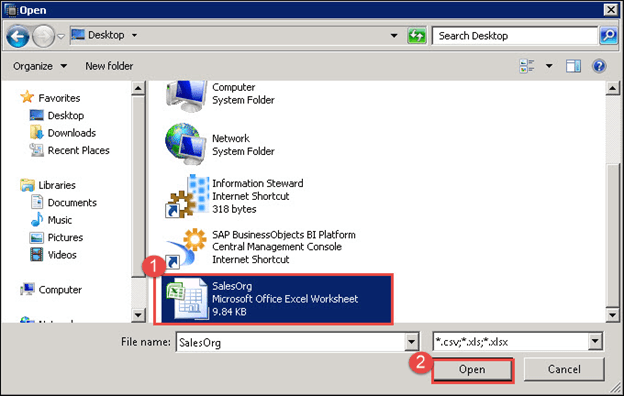 - 选择 SalesOrg.xls 文件。